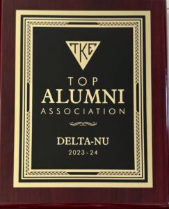The Delta Nu Tau Kappa Epsilon Alumni Association is a group working together to foster the TKE spirit among alumni of many generations. This association is chartered as a chapter-based Alumni Association which plans social and philanthropic events and awards scholarships and other funds to collegiate members.