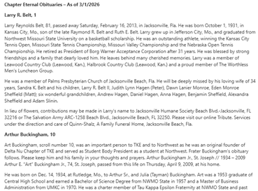 The TKE Alumni of Northwest Missouri State University have established several scholarships that are available to Active Chapter members in good standing and graduating high school seniors (male or female).